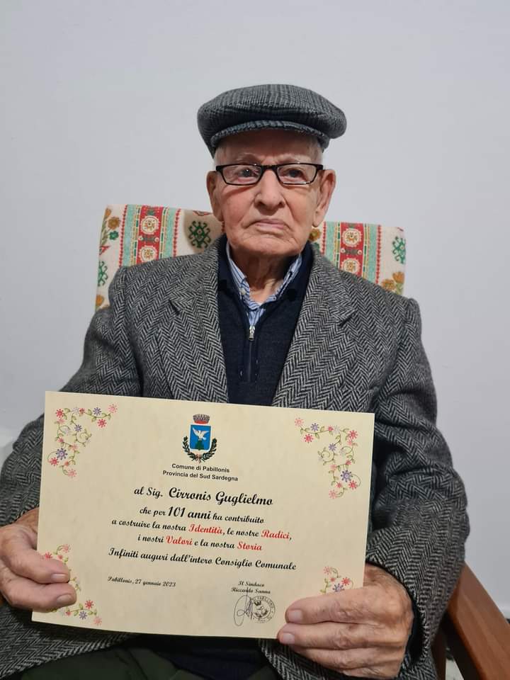 A dirlo è stato il sindaco di Pabillonis, Riccardo Sanna nel festeggiare il 101esimo compleanno di tziu Guglielmo Cirronis.