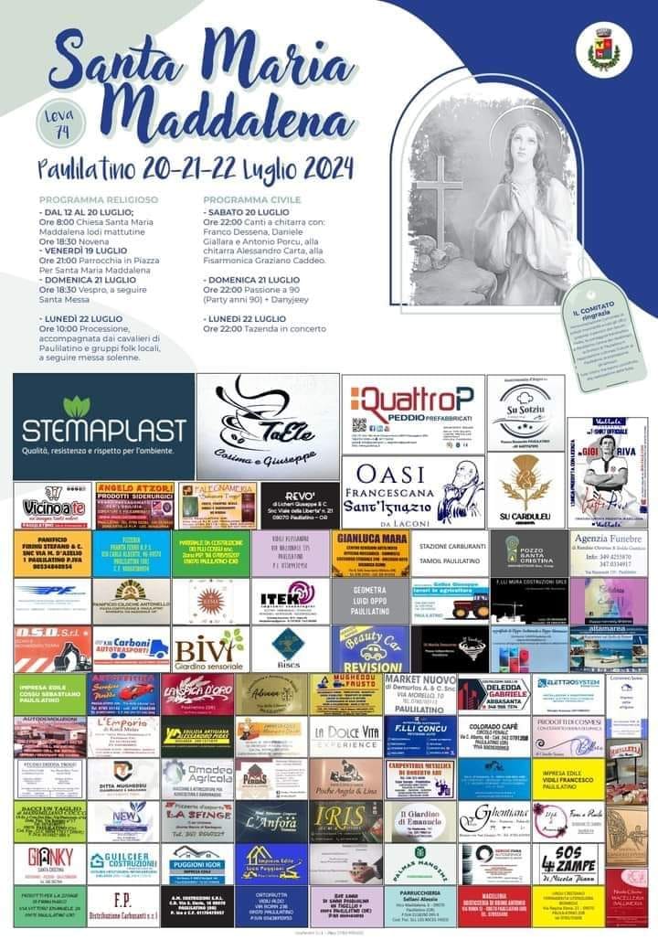 Saranno tre i giorni di festa che Paulilatino dedicherà a Santa Maria Maddalena. Sabato 20 luglio, alle 22.00, sono in programma i canti a chitarra con i cantadores Daniele Giallara, Franco Dessena e Antonio Porcu accompagnati alla chitarra da Alessandro Carta e alla fisarmonica da Graziano Caddeo. Domenica 21 luglio, alle 18.30, saranno recitati i Vespri seguiti dalla celebrazione di Santa Messa. Alle 22.00 spazio a “Passione a 90 (Party anni 90) + Danyjeey”.