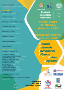 Ripercorrere tracce antiche che aiutino a ripensare la visione del futuro. Questo l’intento delle Acli provinciali di Oristano, che con un nutrito gruppo di sponsor organizzano la seconda edizione del festival “Andalas Culturalis, Literaduras, Idiomas. Oddeu Regionali”. La manifestazione si svolgerà sabato 26 e domenica 27 ottobre all’Hostel Rodia di Oristano, sotto la direzione artistica di Vincenzo Pisanu.