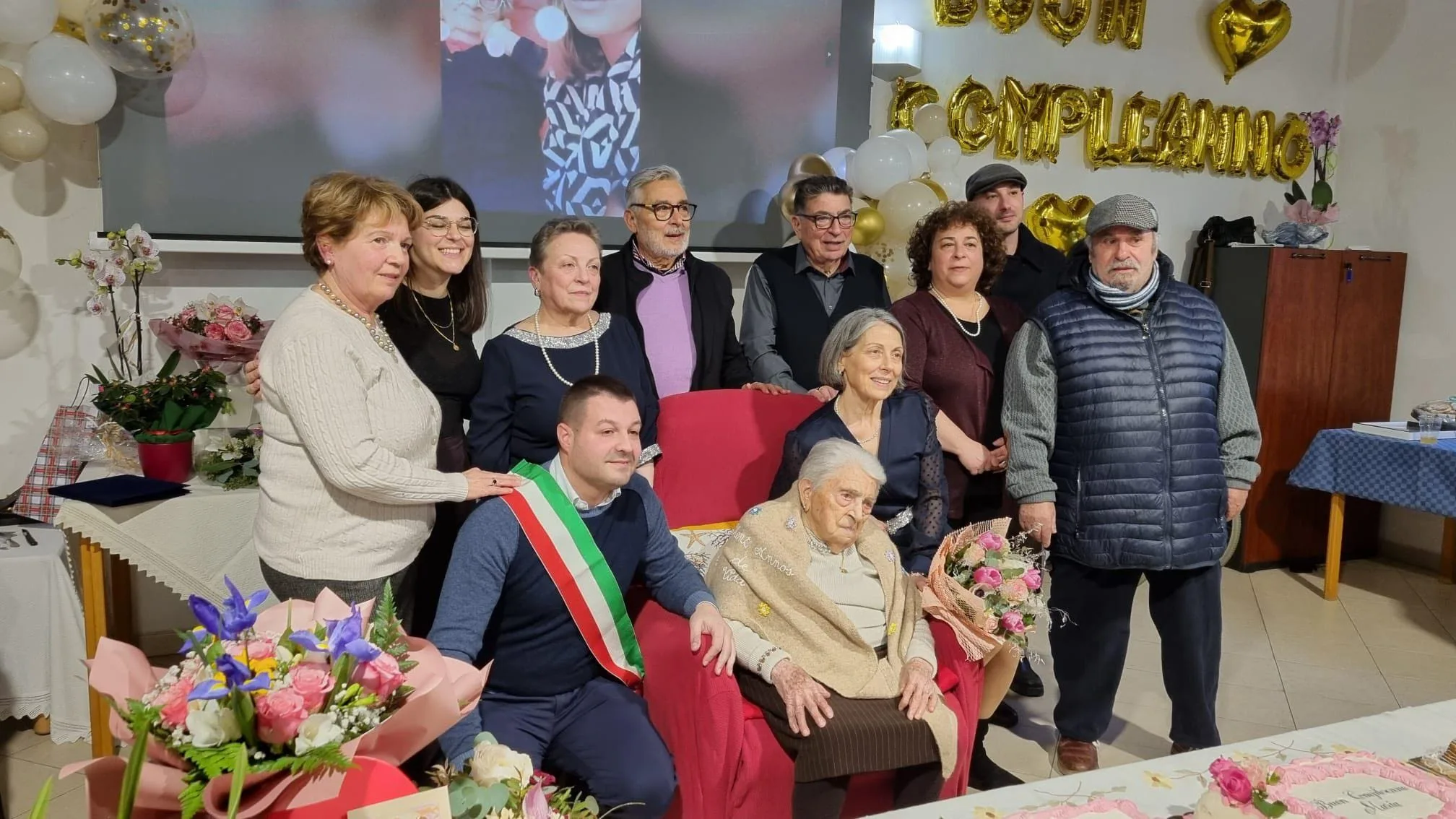 Una grande festa, per lei, organizzata dalla famiglia, alla quale è stata invitata anche l’amministrazione comunale, in testa il sindaco Stefano Soro, che le ha consegnato una targa ricordo, un mazzo di fiori e una pergamena con la stampa del suo atto di nascita.