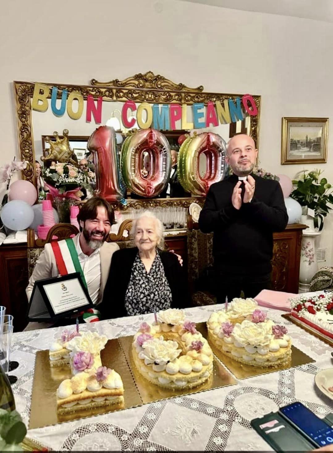 Una grande festa per la nonnina, alla quale hanno preso parte anche il sindaco Fabrizio Demelas e il parroco di San Pantaleo, don Luca Collu.