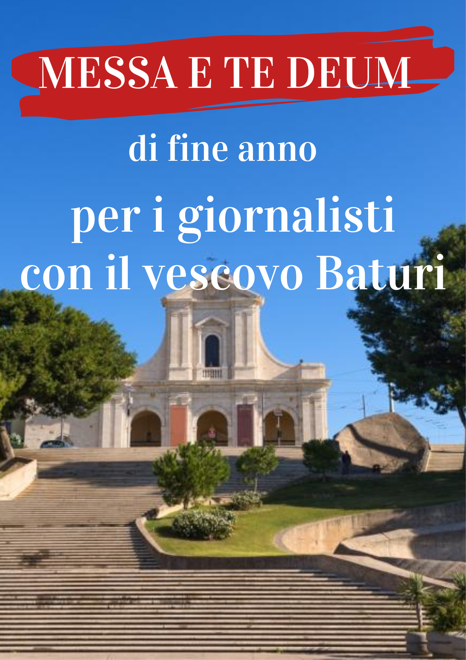 Venerdì 30 dicembre, alle ore 16,00, presso la basilica di Nostra Signora di Bonaria in Cagliari, l’Arcivescovo e segretario generale della Conferenza episcopale italiana monsignor Giuseppe Baturi, presiederà il tradizionale appuntamento con la Messa di fine anno e la recita del Te Deum, promosso dall’Ucsi Sardegna (Unione cattolica della stampa italiana), rivolto a tutti i giornalisti e gli operatori della comunicazione.