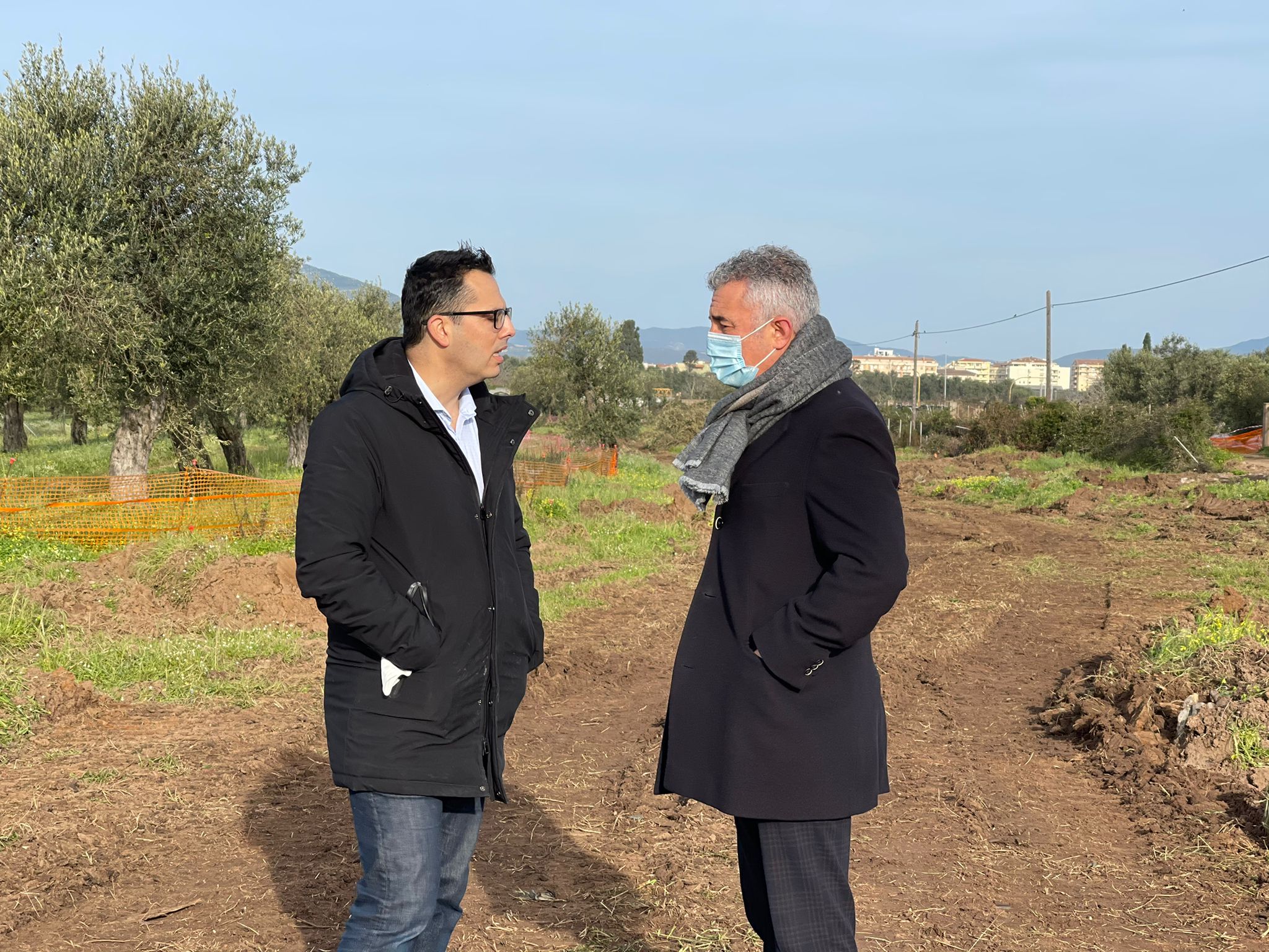 A vedere lo stato dei lavori il Ssindaco Mario Conoci e l’Assessore alle Opere pubbliche Antonello Peru, con i responsabili dell’impresa Angius Costruzioni Srl, capogruppo dell’Ati con Spea Srl, che sta eseguendo i lavori.