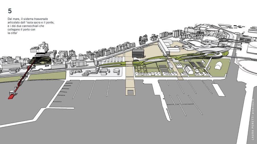 Il progetto prevede la messa a sistema delle macro aree costituite dalla Fiera e dal Porto, nella parte in prossimità del Padiglione Nervi, ricollegando al contempo la parte residenziale, arretrata rispetto al mare, rimagliando il sistema del lungomare con la città.