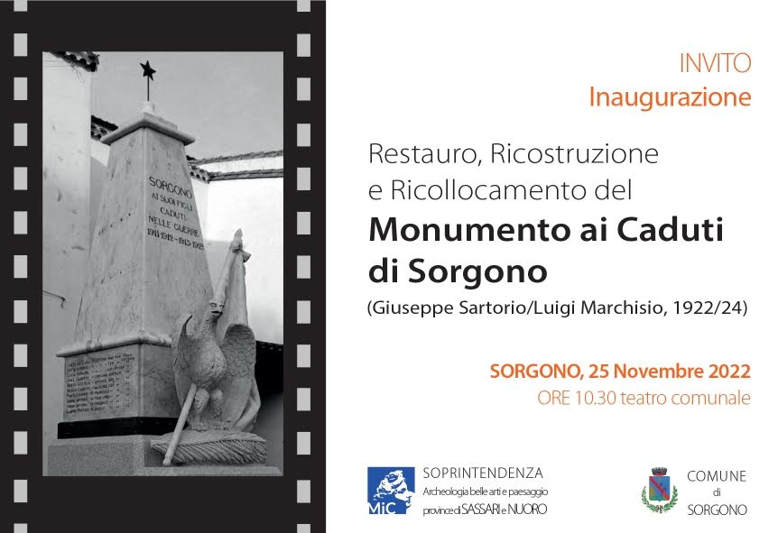 Sarà presentato domani, alle 10.30, al Teatro Comunale di Sorgono, il restauro del Monumento ai Caduti di Sorgono realizzato tra il 1922 ed il 1924 su progetto dell’artista Giuseppe Sartorio. L’intervento è stato possibile grazie ai fondi erogati dal ministero della Cultura.