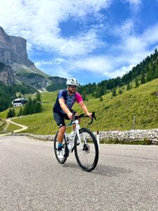 «Il ciclismo è sacrificio e dedizione – dichiara Andrea Murgia – ma la fatica è direttamente proporzionale alla soddisfazione che si prova al raggiungimento di un traguardo. Negli ultimi anni, la mia passione mi ha portato anche oltremare, sulle Dolomiti e sulle Alpi, italiane e francesi, dove ho scalato passi storici come il Passo Sella e il Pordoi, lo Stelvio e il Gavia, il Sestriere, l’Izoard, oltre che in Spagna, dove ho pedalato sino alla cima del vulcano Teide a Tenerife. Devo un ringraziamento particolare a mia moglie che pur non pedalando condivide con me la mia passione e mi accompagna in ogni mio viaggio: ogni giro è l’occasione per scoprire persone e posti nuovi e vivere l’ atmosfera di eventi unici come ad esempio la partenza del Tour de France dall’Italia del 2024, alla quale ovviamente non potevamo mancare!»