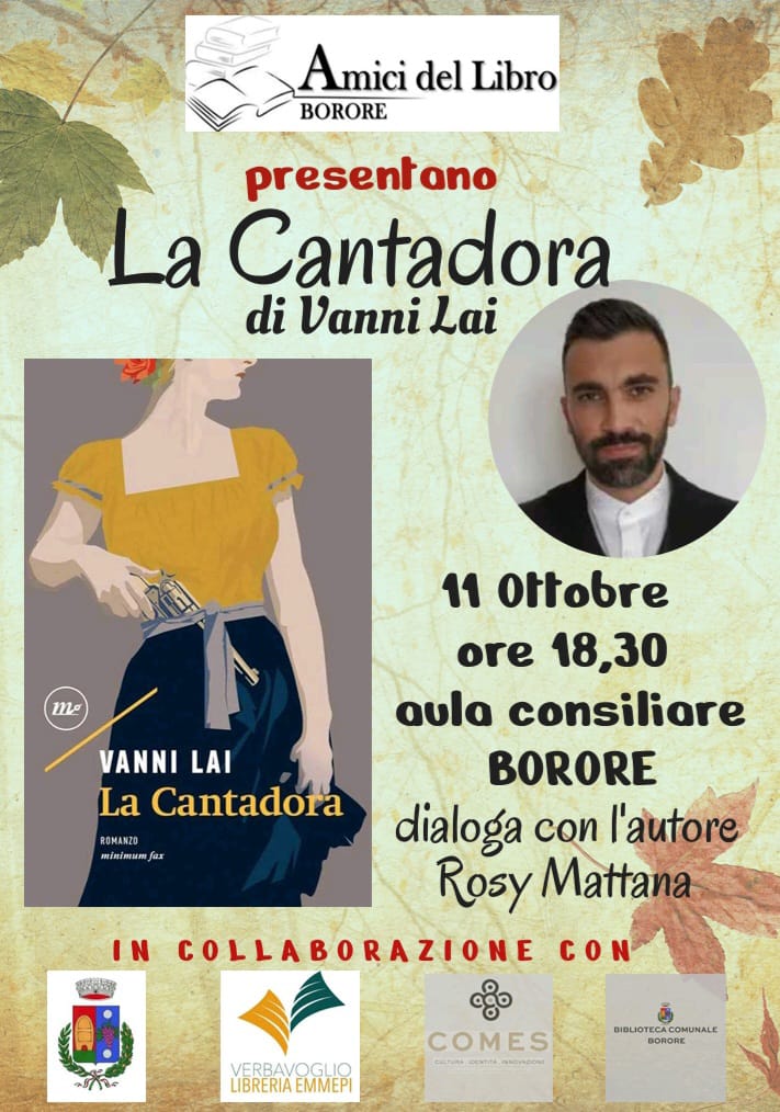 E’ in programma venerdì 11 ottobre, alle 18.30, nell’aula consiliare del comune di Borore, la presentazione del libro “La Cantadora”, di Vanni Lai. Dialogherà con l’autore, Rosy Mattana. Organizza l’associazione “Amici del libro” di Borore, con la collaborazione della libreria EMMEPI di Macomer, della biblioteca comunale e con il patrocinio del comune di Borore.
