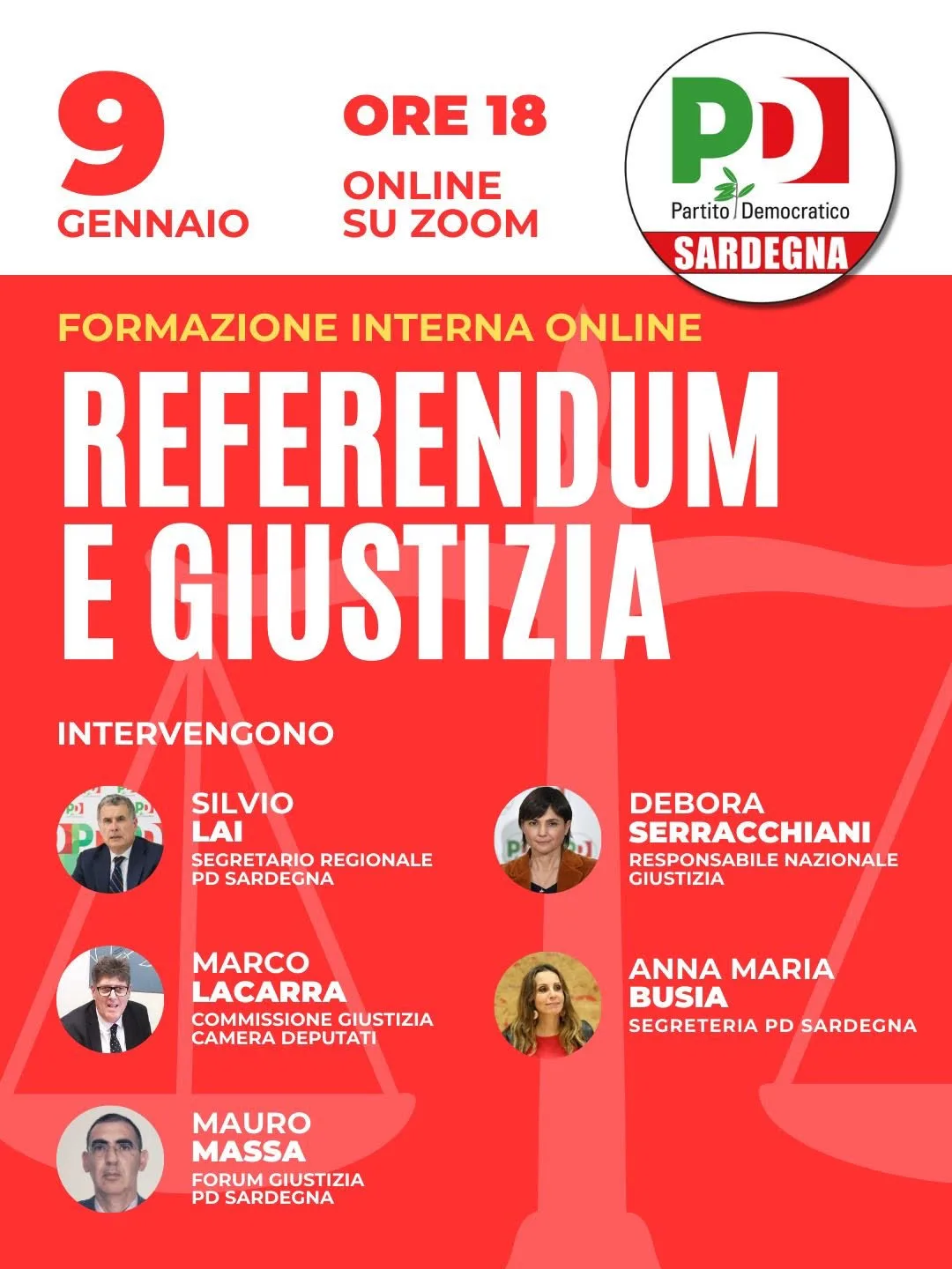Il Partito democratico della Sardegna avvia un percorso di informazione, formazione e mobilitazione in vista del referendum costituzionale che interviene sull’assetto della giustizia.