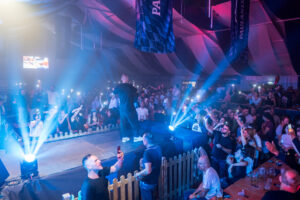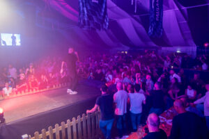 Festa e divertimento sotto l’enorme tendostruttura (30×60 metri, 1800mq con un’altezza interna di circa 10 metri), ma anche aree esterne attrezzate e pensate per accogliere posti in piedi e spazi per i più piccoli con un baby park che ha lavorato a pieno ritmo, facendo divertire i bambini al quale si è aggiunta un’apprezzata area giostre in collaborazione con Matherland. Gli organizzatori hanno inoltre previsto un servizio navetta da Alghero e da Sassari che ha permesso a tanti di raggiungere l’anfiteatro “I. Graziani” senza dover prendere l’auto.