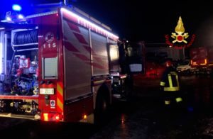 La sala operativa 115 che ha ricevuto le segnalazioni, ha inviato sul posto le squadre di pronto intervento della sede centrale con un’APS (autopompa serbatoio) un automezzo fuoristrada dotato di modulo antincendio, un autobotte e un AF ARA (autofurgone autorespiratori) per un totale di quattro automezzi e nove operatori che hanno spento il rogo prima che le fiamme si potessero propagare all’intera attività ed alle numerose carcasse d’auto.