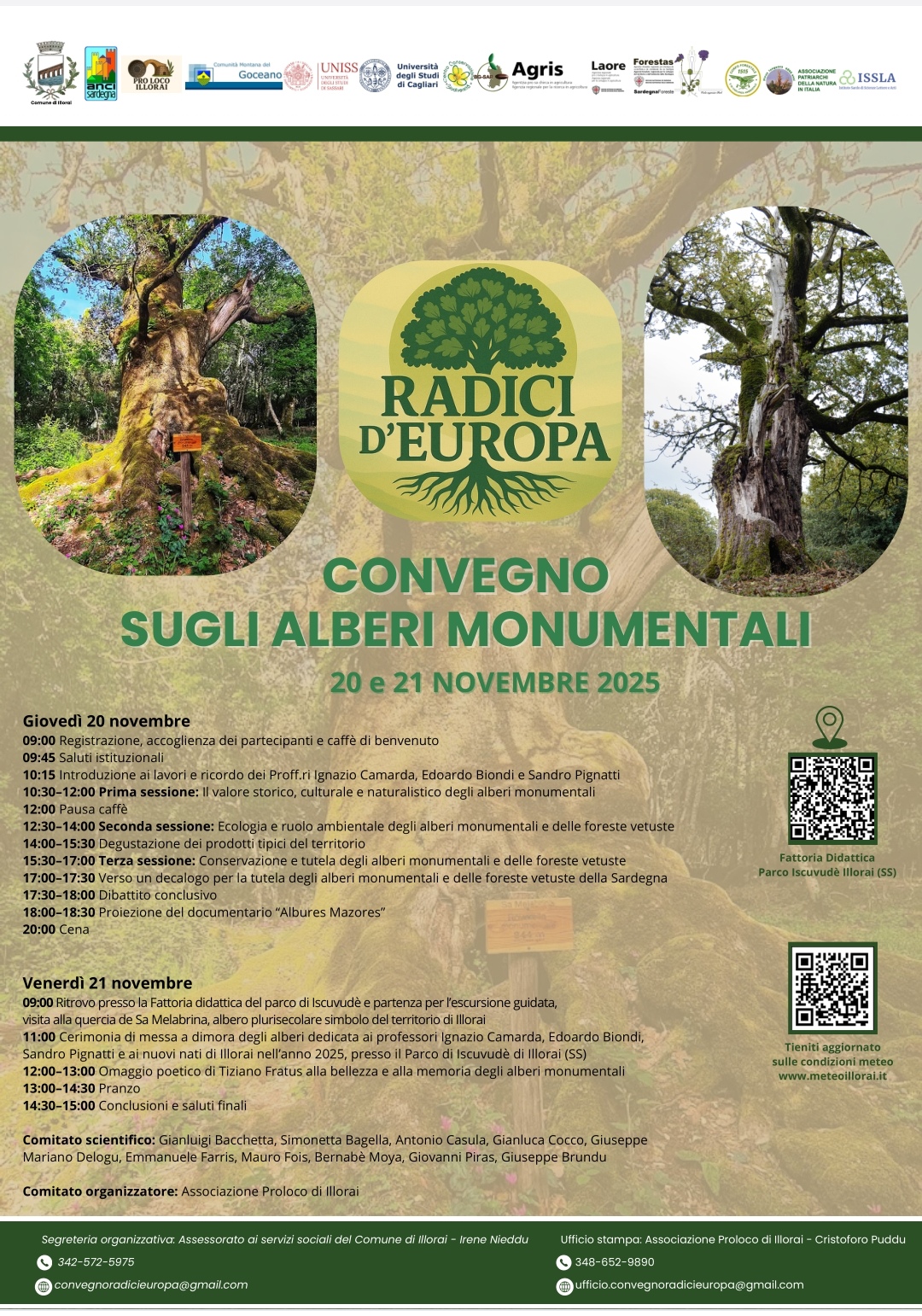 Il Convegno sugli alberi monumentali, promosso dall’Amministrazione comunale di Illorai e dal Comitato organizzatore dell’Associazione Pro Loco APS di Illorai, si terrà dal 20 al 21 novembre 2025 nella Fattoria Didattica del Parco di Iscuvudè.