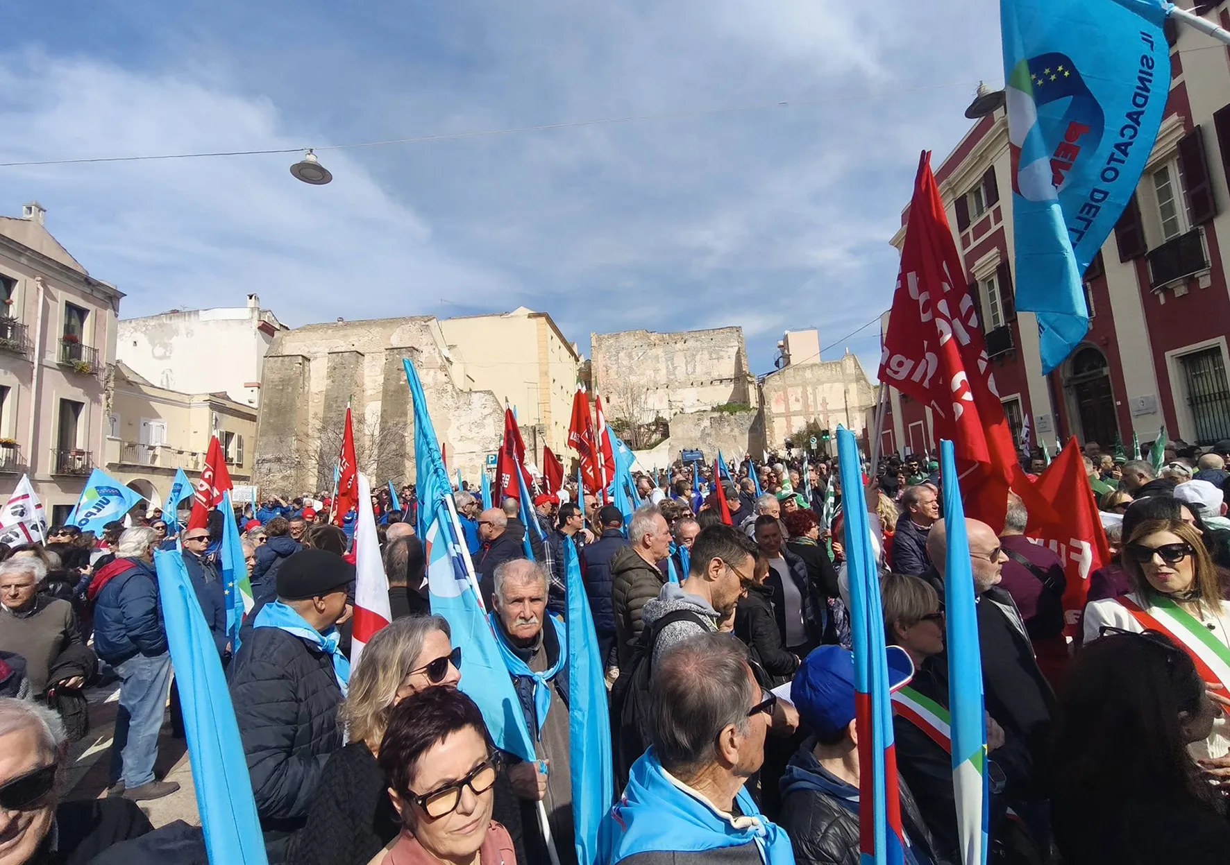 Oltre 1.500 persone hanno partecipato alla manifestazione in piazza Palazzo, a Cagliari, sul tema della concentrazione dei detenuti al 41 bis negli istituti penitenziari sardi. Presenti numerosi sindaci con le fasce tricolori, rappresentanti istituzionali e cittadini provenienti da tutta l’Isola.