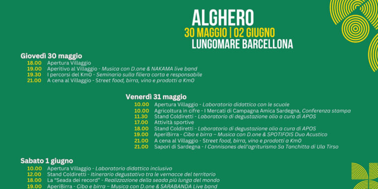 Apre domani, alle 18.00, il Coldiretti Village ad Alghero, lo spazio dedicato al buon cibo, ai prodotti locali e all’intrattenimento all’interno di uno degli eventi sportivi più in vista dell’anno in Sardegna, il “Rally Italia Sardegna”.