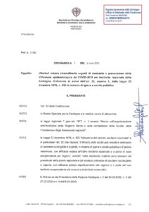 Nuova ordinanza del presidente della Regione, Christian Solinas, per contrastare e prevenire la diffusione del Coronavirus.