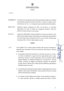 L’articolo 1, prevede che tutti i soggetti in arrivo, nonché quelli che abbiamo fatto ingresso in Sardegna nei quattordici giorni antecedenti alla data di emanazione della presente ordinanza hanno l’obbligo: