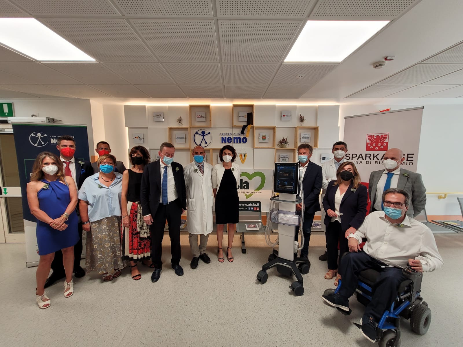 I Centri Clinici NeMO nascono dalla volontà degli stessi pazienti. «Una comunità di persone con SLA, SMA e distrofie muscolari che ha imparato a fare della fragilità la propria forza, facendo i conti ogni giorno con la sfida del limite imposto dalla malattia – spiega Alberto Fontana presidente dei 7 Centri presenti in Italia (Milano, Roma, Genova, Brescia, Ancona, Napoli e Trento) – e che oggi, insieme, continua a lottare per affermare di poter contribuire a dare risposte nuove, che possano generare cambiamento. Siamo grati ad AISLA, Sparkasse e alle Istituzioni perché giornate come quelle di oggi ci permettono di consolidare alleanze per continuare ad offrire risposte adeguate a tutte le persone che convivono con una patologia grave e neurodegenerativa come la SLA dal forte impatto clinico e assistenziale.»