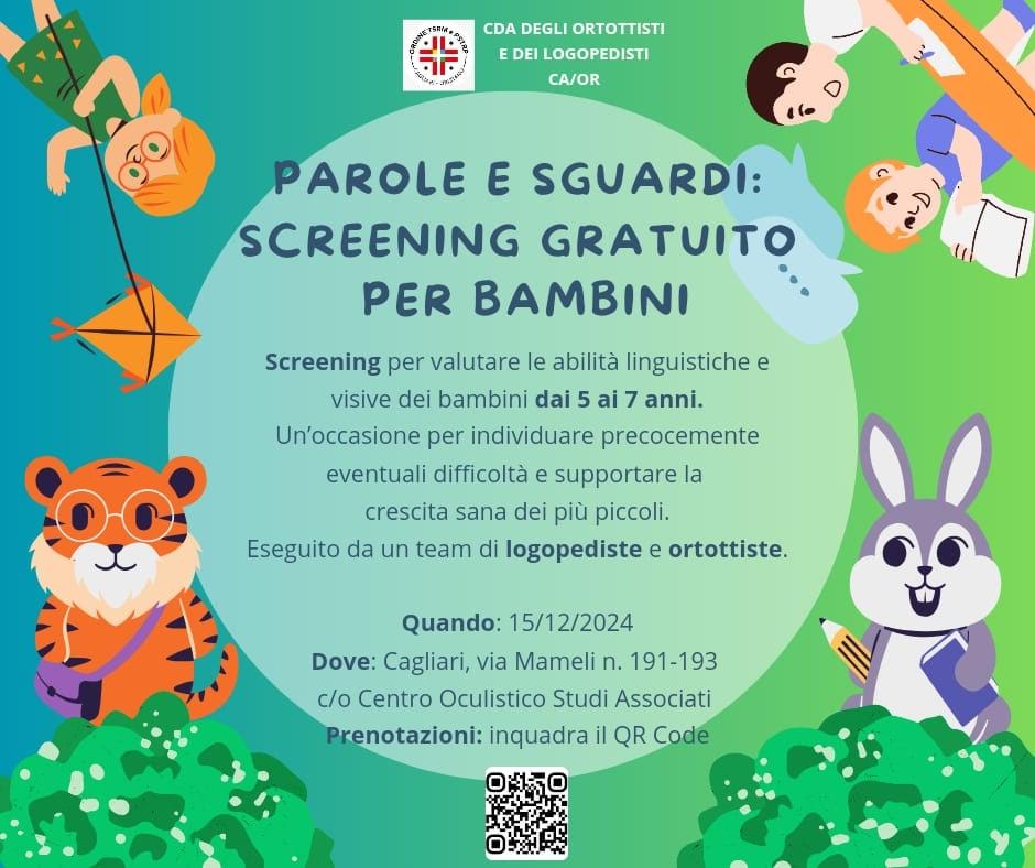Il 15 dicembre, in via Mameli 191-193, a Cagliari, si terrà un doppio screening ortottico e logopedico completamente gratuito per tutti i bambini tra i 5 e i 7 anni, organizzato dalle Commissioni d’Albo degli Ortottisti e dei Logopedisti dell’ordine TSRM-PSTRP di Cagliari e Oristano. Tale evento è un’opportunità per i genitori di ottenere una valutazione professionale e gratuita sullo sviluppo visivo e linguistico dei propri figli.