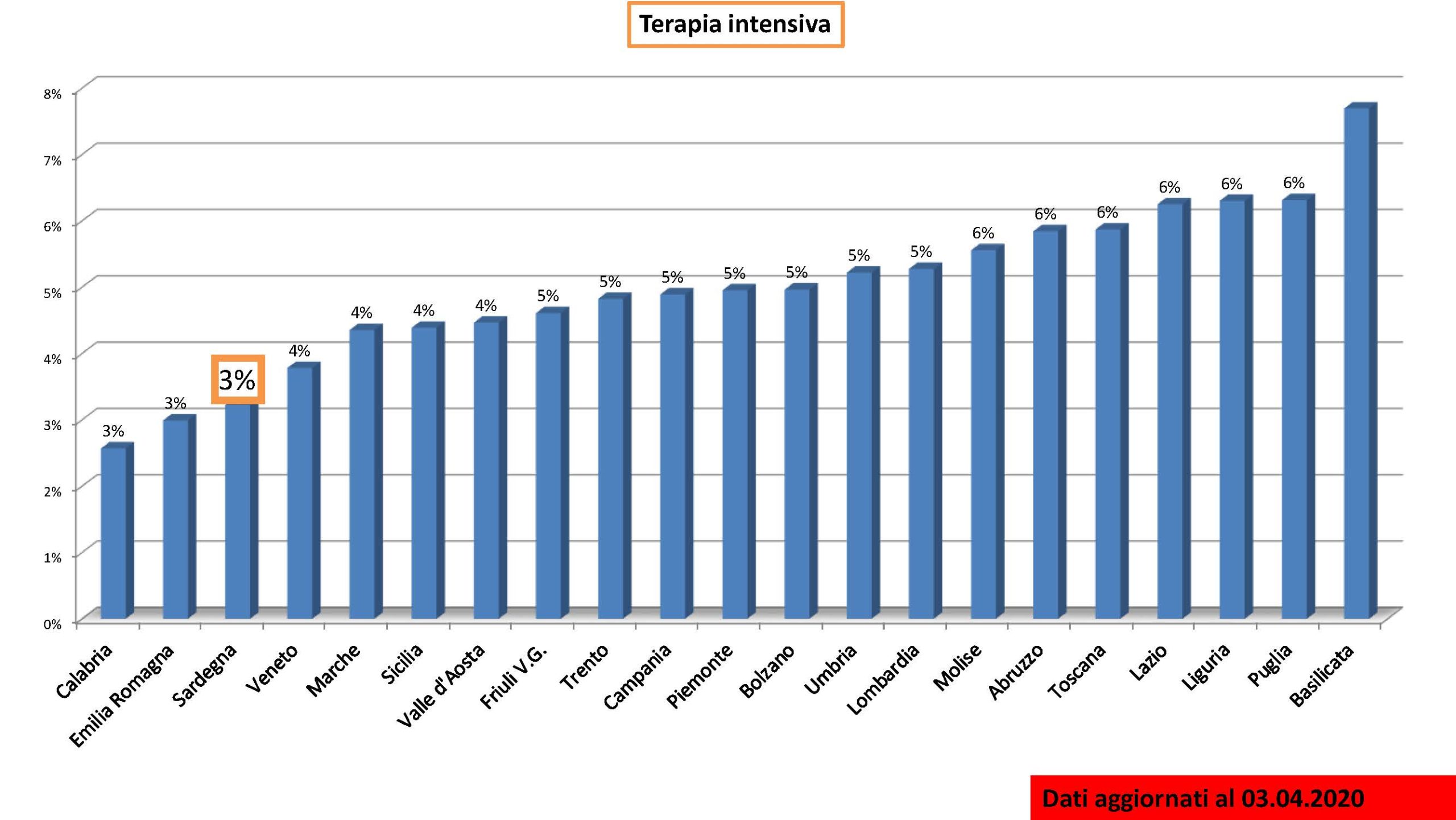Ieri, infine, 4 aprile 2020, in Sardegna i casi totali di positività sono arrivati a 874, su 6.789 tamponi eseguiti, con 123 pazienti ricoverati con sintomi, 642 in isolamento domiciliare, 24 in terapia intensiva, 41 deceduti. In Italia si è arrivati a 124.632 casi totali, su 657.224 tamponi eseguiti, 20.010 ricoverati com sintomi, 3.994 in terapia intensiva, 55.270 in isolamento domiciliare e 15.361 deceduti (8.656 in Lombardia, 1.977 in Emilia Romagna, 1.128 in Piemonte, 607 in Veneto, 307 in Toscana, 574 nelle Marche, 542 in Liguria, 212 nel Lazio, 186 in Campania, 210 a Trento, 197 in Puglia, 145 in Friuli Venezia Giulia, 111 in Sicilia, 153 in Abruzzo, 146 a Bolzano, 41 in Umbria, 41 in Sardegna, 49 in Calabria, 82 in Valle d’Aosta, 11 in Basilicata, 11 nel Molise).