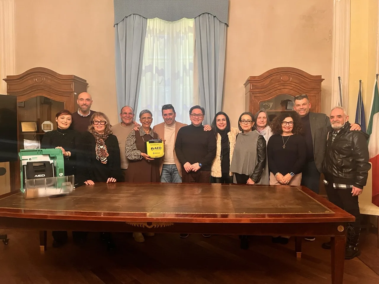Ieri pomeriggio, nella Sala di rappresentanza del Palazzo del Marchese, sede istituzionale del comune di Porto Torres, la Pro Loco turritana ha consegnato all’Amministrazione comunale un defibrillatore di ultima generazione, acquistato grazie ai proventi della vendita delle caldarroste nell’ambito dei mercatini natalizi organizzati durante le ultime festività natalizie in piazza Umberto I.
