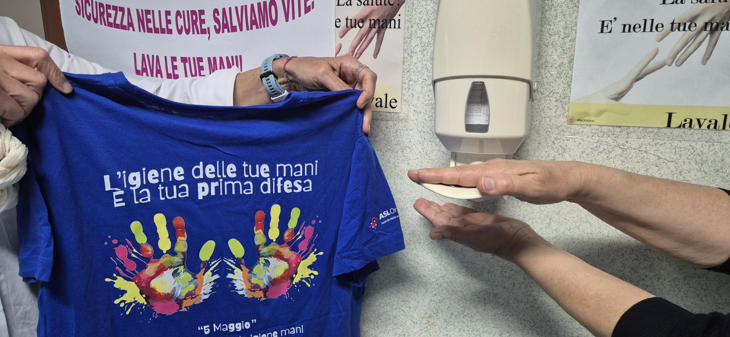 «L’igiene delle mani è la tua prima difesa». Messaggio chiaro, che campeggia nella maglietta fatta realizzare dalla direzione sanitaria dell’ospedale San Martino di Oristano in occasione della Giornata Mondiale per l’Igiene delle mani. L’appuntamento è nei tre ospedali di Oristano, Ghilarza e Bosa e anche nelle strutture sanitarie territoriali per lunedì 5 maggio con una mission importante: salvaguardare la salute di tutto il personale sanitario e dei pazienti attraverso, appunto, una corretta igienizzazione delle proprie mani.