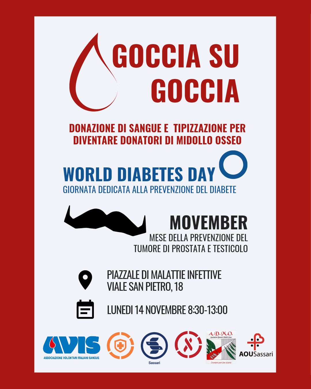Torna lunedì 14 novembre, a Sassari, dalle 8.30 alle 13.00, l’appuntamento con la donazione del sangue “Goccia su Goccia”, organizzato dagli studenti del Segretariato italiano studenti in Medicina, in collaborazione con l’Avis comunale di Sassari e l’Avis Provinciale.