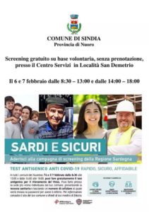 Arriva anche a Sindia la campagna di screening “Sardi Sicuri”, voluta dalla Regione Sardegna come strumento per contrastare la diffusione del Coronavirus nell’isola.