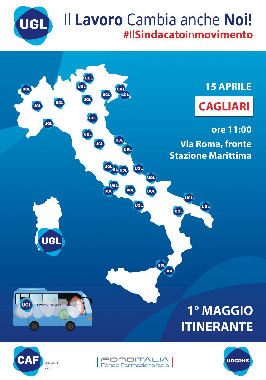Domani, giovedì 15 aprile, arriva a Cagliari, in via Roma, fronte Stazione Marittima, alle ore 11.00, la quattordicesima tappa del tour itinerante promosso dall’UGL, a bordo di un bus, in occasione della Festa del Lavoro col motto “Il Lavoro Cambia anche Noi!”. Il sindacato ha deciso di essere al fianco dei lavoratori con 30 appuntamenti che si snoderanno lungo l’Italia e che si concluderanno sabato primo maggio a Milano.