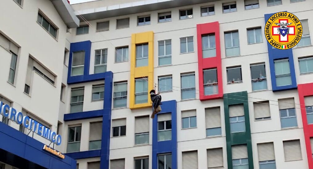 Tanti i sorrisi e gli sguardi di stupore dei piccoli pazienti che hanno potuto ammirare la calata dalle finestre dell’ospedale.