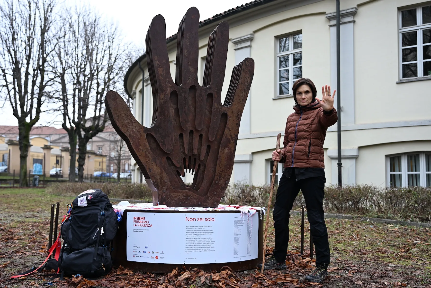 «INSIEME FERMIAMO LA VIOLENZA nasce da un percorso che non è solo artistico, ma anche fisico, umano e politico. Arrivo a questa inaugurazione dopo un lungo cammino di