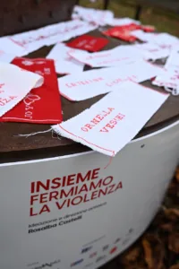 «ll progetto Rosso Indelebile e l’installazione Insieme fermiamo la violenza esprimono con chiarezza una convinzione che orienta l’impegno dell’8×1000 della Chiesa Valdese: la violenza di genere non è un’emergenza da affrontare, ma una cultura da cambiare. Per questo sosteniamo percorsi che agiscono sulle radici culturali della violenza, promuovendo educazione, consapevolezza, responsabilità collettiva e protagonismo delle giovani generazioni. Rendere visibile questo impegno nei luoghi della vita quotidiana significa affermare che la tutela dei diritti, della dignità e della libertà delle donne riguarda l’intera società.»
