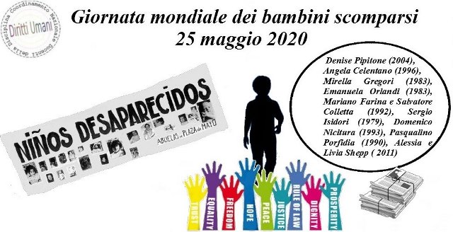 Il Coordinamento Nazionale dei Docenti della Disciplina dei Diritti Umani in occasione della Giornata mondiale dei bambini scomparsi che si celebra il 25 maggio di ogni anno, dal 1983, invita tutti e in modo particolare il mondo della scuola a una profonda riflessione.