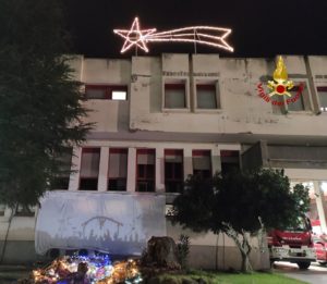 Una tradizione che si ripete: i vigili del fuoco di Oristano hanno installato la grande stella cometa fronte strada via Zara, che farà da contorno al presepe realizzato all’esterno.