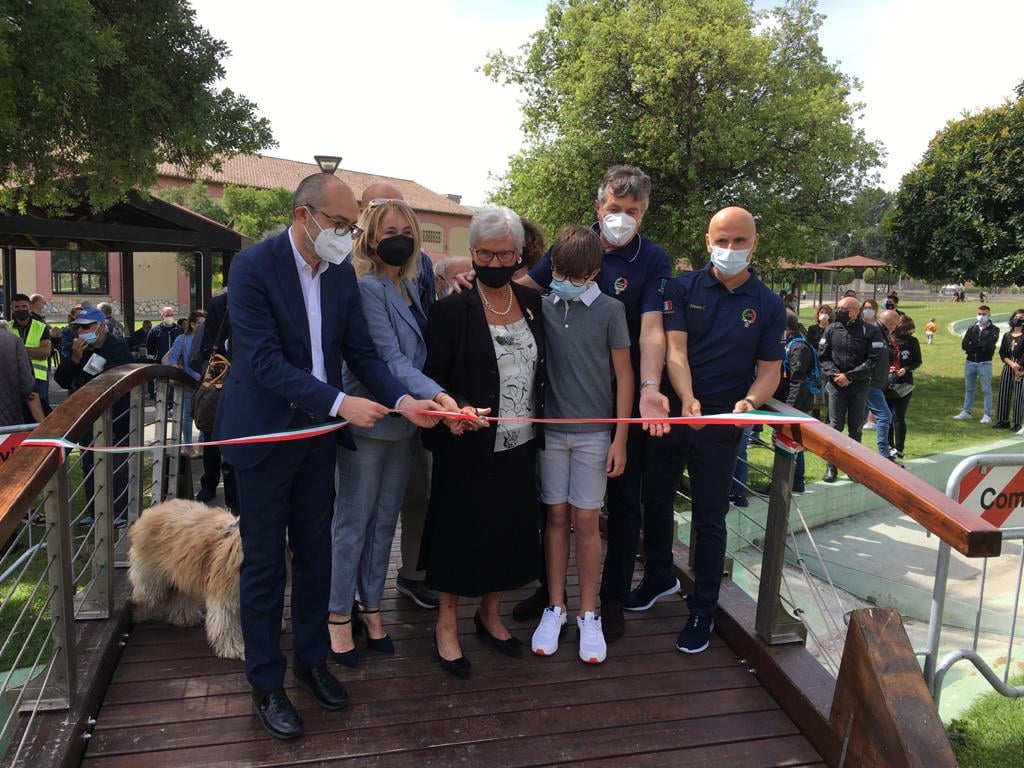 «Restituiamo alla città questa area giochi – ha sottolineato il primo cittadino -, esempio di collaborazione fruttuosa tra pubblico e privato, concepito per essere fruito da tutti, accessibile ai disabili e che contribuisce ad arricchire la dotazione del parco della Vetreria. Ringrazio la famiglia Ferraguti ed il suo capostipite Martino che ci ha consentito di allestire questo spazio, che a lui dedichiamo. Con questa area giochi abbiamo dato una risposta ai giovanissimi e speriamo qunto prima di dare una risposta anche ai meno giovani, sistemando i due campi da bocce all’interno di questo bellissimo parco.»