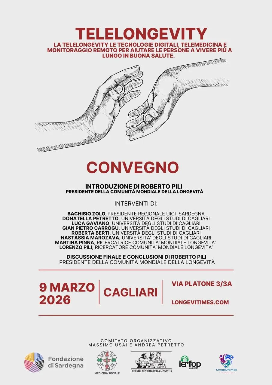 Il convegno TeleLongevity si è tenuto a Cagliari, presso la sede IERFOP di Via Platone 3/3A, alla presenza di ricercatori, docenti universitari e specialisti del settore. L’evento, promosso dalla Comunità Mondiale della Longevità e sostenuto da Fondazione di Sardegna, IERFOP Onlus e Longevitimes, ha affrontato il tema del ruolo delle tecnologie digitali nella cura delle persone anziane, con l’obiettivo di identificare strumenti concreti per estendere gli anni di vita vissuti in buona salute.