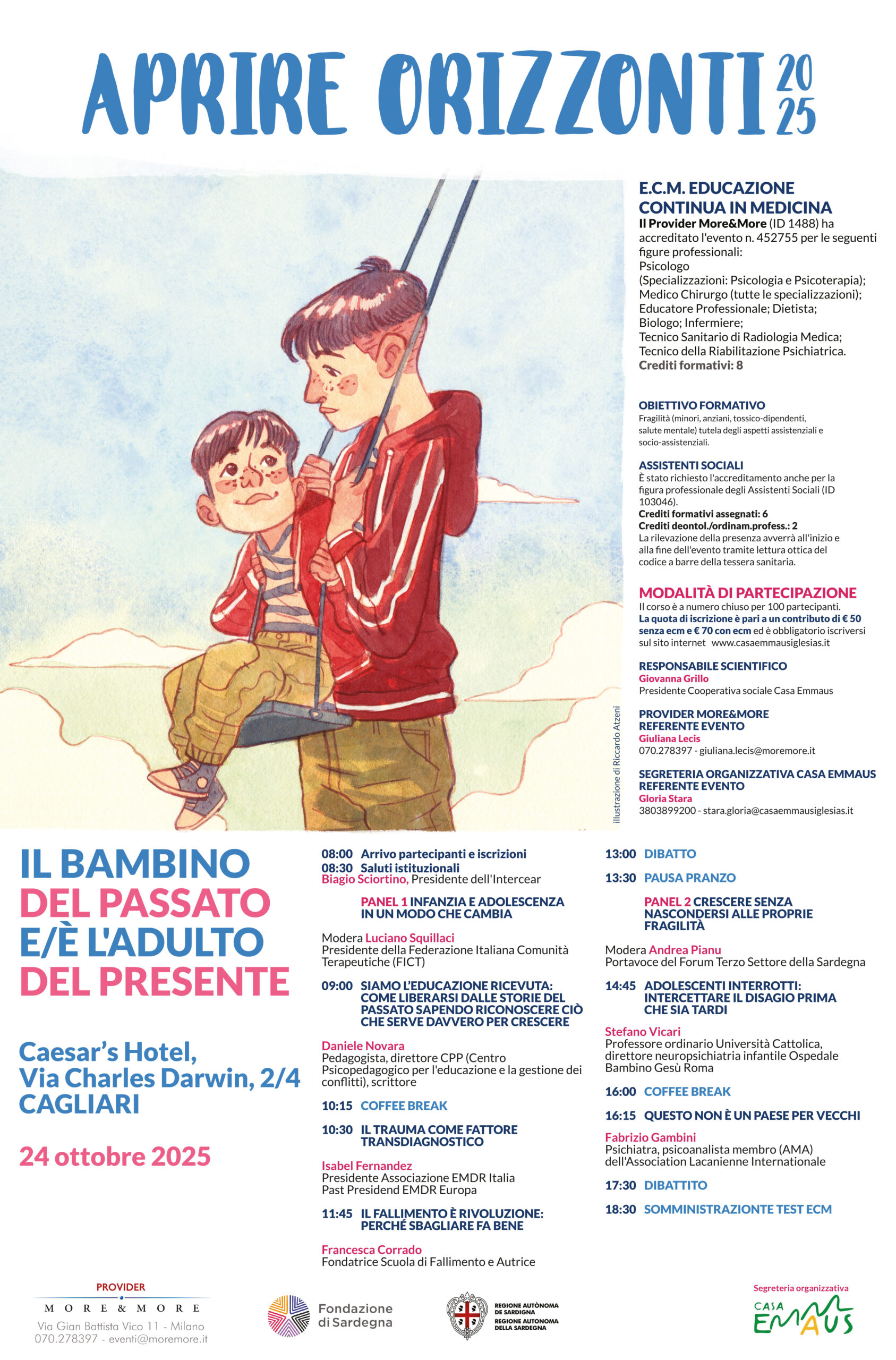Giovanna Grillo, presidente della cooperativa sociale Casa Emmaus di Iglesias, lancia così l’edizione 2025 della Conferenza nazionale “Aprire Orizzonti”, dal titolo “Il bambino del passato e/è l’adulto del presente”, che quest’anno è dedicata all’età evolutiva. Una particolare attenzione sarà data al legame tra l’infanzia e l’adolescenza, focalizzandosi su temi cruciali quali traumi, abusi e il percorso di liberazione dal passato.
