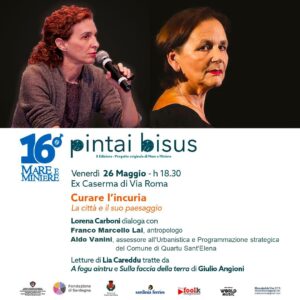 Un anno dopo il successo della prima edizione, ritorna Pintai bisus, progetto pensato ad hoc e dedicato a Quartu Sant’Elena con il contributo dell’Amministrazione comunale nell’ambito di Mare e Miniere, la rassegna itinerante di musica, teatro, danza (quest’anno alla sua sedicesima edizione) organizzata dall’associazione culturale Elenaledda Vox. In programma tre diversi appuntamenti modulati sulla capacità di immaginare, riflettere e guardare al futuro della terza città più popolosa della Sardegna.