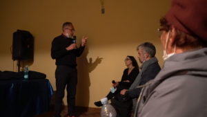 L’incontro tra Columbu e Rosaleva ha rappresentato un confronto tra “visioni” cinematografiche al cospetto di un pubblico molto attento che non ha esitato a presentare domande. Nel corso della serata sono state proiettate le docufiction “Surbiles” e “Visos. Sogni, avvisi, visioni”. Un tema, quello dei sogni e delle visioni, per Columbu in stretta relazione con il mondo del Cinema, «perché il Cinema è esso stesso un sogno, che come tutta l’arte tende a produrre delle rappresentazioni della realtà, i cui risvolti sono prossimi all’universo onirico. Ogni film è una lezione di cinema. In ogni opera ci sono tutti gli elementi, i metodi e le visioni proprie di quell’autore, e possono essere decifrate e fatte proprie da chi guarda.»