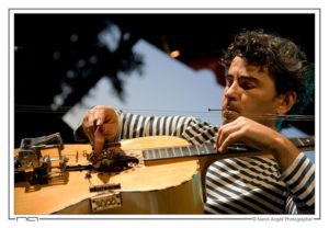 Sul palco Simon Riou (Francia) al sassofono, Oscar Viret (Francia) alla tromba, Tammam Al Rammada (Siria) al ney, Athina Siskaki (Grecia) al violino e alla lira, Ottavia Rinaldi (Italia) all’arpa, Riahi Wajdi (Tunisia) al pianoforte, Alexandros Kentris (Grecia) al bouzouki, Ines Coville (Francia) al contrabbasso e alla voce, e Pierre Martin (Francia) alla batteria. Ospite del concerto Paolo Angeli, col quale hanno composto insieme alcuni pezzi nei giorni scorsi; il chitarrista sardo (di Palau) è un talento fuori dagli schemi, capace di elaborare una sintesi originale tra musica tradizionale della sua isola e contemporaneità con la sua “chitarra sarda preparata”: uno strumento di sua invenzione, un ibrido a diciotto corde tra chitarra baritono, violoncello e batteria, dotato di martelletti, pedaliere, eliche a passo variabile.