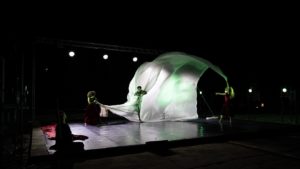 A partire da queste premesse, sono stati tantissimi gli aspetti emozionali che la compagnia Res Extensa ha cercato di rappresentare attraverso il movimento agli spettatori di Sennori: dall’espressione di gioia aglistati d’ansia, dall’ironia alla sensualità fino alla rappresentazione della tempesta con l’utilizzo di un grande lenzuolo di seta.