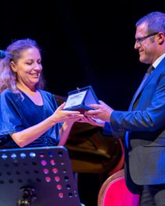 Sabato la serata clou. Tanti applausi per l’ospite d’onore, Setak, pseudonimo di Nicola Pomponi, vincitore della Targa Tenco 2024 con l’album “Assamanù”, il miglior album in dialetto che ha deliziato il pubblico nella seconda serata dedicata alle lingue minoritarie. Setak ha ricevuto la targa dalle mani del presidente della Fondazione Alghero, Graziano Porcu.