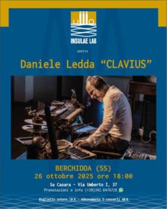 Strumenti autocostruiti, ibridi, aumentati. Dal pianoforte scomposto al clavicordo elettromagnetico sino ad arrivare al piano aumentato: “Clavius” è l’intrigante e affascinante progetto di Daniele Ledda – musicista, compositore e docente di Musica Elettronica al Conservatorio di Cagliari – che Insulæ Lab – Centro di Produzione Musica ospiterà domenica 26 ottobre, alle ore 18.00, a Sa Casara, Berchidda, in via Umberto I nr 37. Info e prenotazioni 3426476726; biglietto intero 10 euro, abbonamento 5 concerti 40 euro.