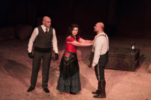 Una tragedia d’amore che ha stregato il pubblico del Teatro Comunale. Cinque minuti di applausi hanno sancito il successo di Carmen, tragédie d’amour, terzo appuntamento con la Stagione lirica dell’Ente “Marialisa de Carolis” di Sassari, adattamento in atto unico dell’immortale capolavoro di Georges Bizet. Chi si aspettava una semplice riduzione della Carmen si è dovuto ricredere: grazie a un’attenta revisione della partitura curata dal direttore d’orchestra Jacopo Brusa, il pubblico di Sassari si è trovato davanti una Carmen insolita, rinnovata nella versione curata dal regista sassarese Gianni Marras ispirata più alla novella originaria di Prosper Mérimée che al plot dell’opera bizettiana. Il pubblico del Comunale, che nel rispetto delle limitazioni ha partecipato numeroso, ha mostrato di apprezzare tributando ai protagonisti applausi generosi: impossibile diversamente, d’altronde, vista la caratura del cast. Si è rivelata vincente l’idea di presentare in scena il mezzosoprano Veronica Simeoni (Carmen) e il tenore Roberto Aronica (Don José), coppia nella vita oltre che sul palcoscenico e protagonisti nei più prestigiosi teatri del mondo. Con loro il baritono Marco Bussi (Escamillo), il soprano Federica Vitali (Micaëla, personaggio inesistente in Mérimée) e gli attori Emanuele Floris e Maurizio Giordo che hanno impersonato Zuniga, Lillas Pastia e Garcia, il marito di Carmen assente nell’opera di Bizet.