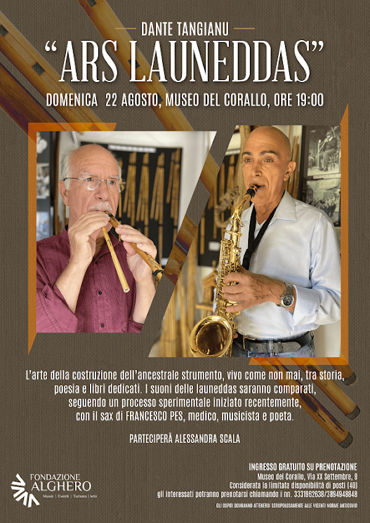 Uno strumento millenario, che si perde nella notte dei tempi, i cui suoni echeggeranno nell’estate algherese. Ed è proprio delle launeddas che si parlerà domenica 22 agosto alle 19.00, ad Alghero, presso il giardino del Museo del Corallo. A parlarne saranno Alessandra Scala, Dante Tangianu e Francesco Pes. All’evento parteciperà il giornalista e suonatore del millenario strumento, Roberto Tangianu.