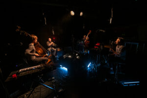 La conclusione della seconda giornata di Miniere Sonore sarà affidata al quartetto francese dei No Tongues. Unendo sperimentazione acustica e rituali elettronici, Matthieu Prual (sassofono, clarinetto e flauti), Ronan Courty (contrabbasso e tastiera), Ronan Prual (contrabbasso e percussioni) e Alan Regardin (tromba ed elettronica), nel loro progetto “IIII” creano un universo immersivo e originale, e uno stato di euforia che invita al movimento.