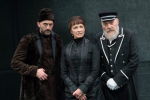 Sotto i riflettori Maddalena Crippa, una della regine del teatro italiano, insieme con un affiatato cast, formato da (in ordine alfabetico) Alessandro Averone, Sergio Basile, Gianluigi Fogacci, Alessandro Sampaoli e Emilia Scatigno, per un avvincente e divertente trittico che comprende “L’Orso”, “I Danni del Tabacco” e “La Domanda di Matrimonio”, tre pièces in bilico tra farsa e tragedia, nello stile del vaudeville e del monologo satirico, con scenografie di Ferdinand Woegerbauer, costumi di Anna Maria Heinreich e disegno luci di Andrea Violato (assistente alla regia Carlo Bellamio), produzione Tieffe Teatro – Milano e Teatro Quirino Srl.