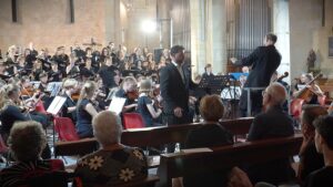 Di fronte a un pubblico delle grandi occasioni, il 12 settembre i tre maestri Uwe Sochaczewsky, Laura Lambroni e Ciro Cau si sono alternati nel dirigere, tra applausi scroscianti, lo spettacolare ensemble, che dalle note sublimi dell’Ouverture del Flauto Magico di Mozart eseguita per sola orchestra ha dato vita a un’esaltante amalgama di armonie strumentali e vocali, sublimando opere senza tempo di Mozart e Mendelssohn. Nel ruolo di solista il baritono Michele Barria.