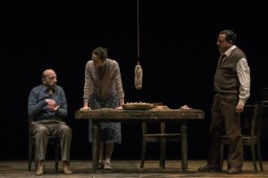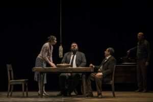Ritratto di famiglia (in un inferno) con “456”, una commedia nera scritta e diretta da Mattia Torre, con Massimo De Lorenzo, Carlo De Ruggieri, Cristina Pellegrino e con Giordano Agrusta, con scene di Francesco Ghisu, disegno luci di Luca Barbati e costumi di Mimma Montorselli – produzione Marche Teatro, Nutrimenti Terrestri e Walsh, in cartellone mercoledì 6 marzo, alle 21.00, al Cine/Teatro “Olbia” di Olbia, giovedì 7 marzo, alle 21.00, al Teatro Civico “Gavì Ballero” di Alghero e venerdì 8 marzo, alle 21.00 al Teatro Comunale di San Gavino Monreale sotto le insegne della Stagione 2023-2024 de La Grande Prosa firmata CeDAC Sardegna. La pièce firmata da uno degli autori di spicco del panorama italiano (da testi teatrali come “In mezzo al mare”, “Migliore” e “Qui e Ora”, a serie tv come “Buttafuori”, “Boris”, da cui è tratto l’omonimo film e “La linea verticale”, Premio David di Donatello 2021 per la sceneggiatura di “Figli”), descrive le dinamiche feroci e la drammatica quotidianità di un piccolo nucleo familiare, nell’isolamento di una valle ai confini dell’ignoto. «Padre, madre e figlio sono ignoranti, diffidenti, nervosi» – si legge nella presentazione -. «Si lanciano accuse, rabboccano un sugo di pomodoro lasciato dalla nonna morta anni prima, litigano, pregano, si odiano. Ognuno dei tre rappresenta per gli altri quanto di più detestabile ci sia al mondo». “456” propone con la cifra ironica, lucida e spietata di Mattia Torre, prematuramente scomparso nel 2019, una situazione insostenibile, gravida di tensione, che però si stempera nella tregua apparente necessaria per accogliere al meglio «un ospite atteso da tempo, che può e deve cambiare il loro futuro». Una temporanea sospensione delle ostilità, che non durerà a lungo…