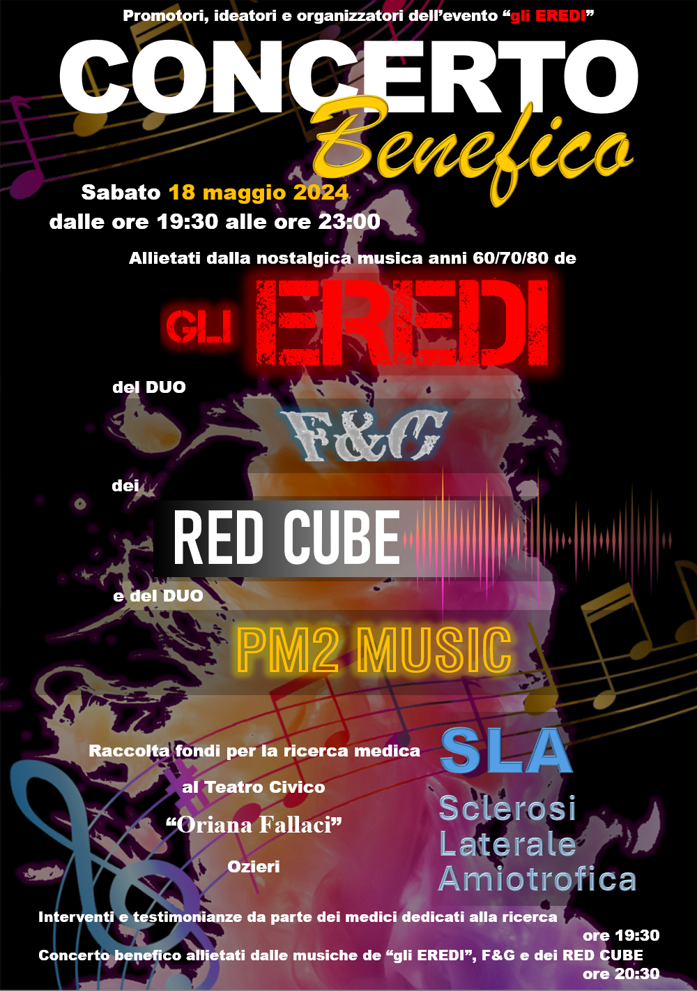 Sabato 18 maggio il Teatro Civico “Oriana Fallaci” di Ozieri, ospiterà “Pro Ricerca SLA”, serata di musica e solidarietà organizzata dalla band “Gli Eredi”