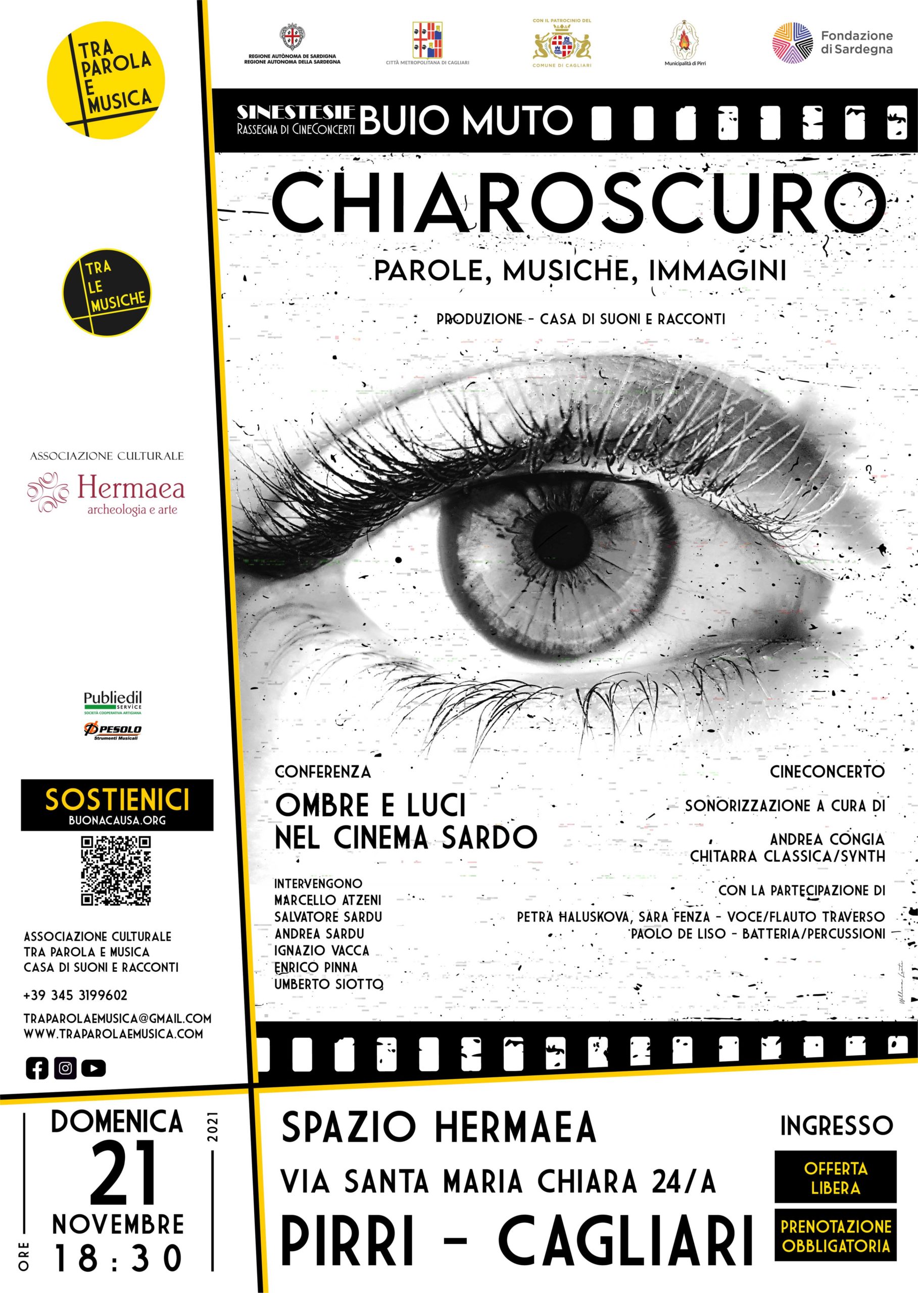 Parte la quinta edizione della Rassegna di CineConcerti Sinestesie, terzo e ultimo segmento del Programma artistico annuale della Casa di Suoni e Racconti “Tra le musiche”. Sin dalle sue origini Sinestesie è incontro tra Cinema e Musica,costruzione multiartistica e multisensoriale che trae slancio dal linguaggio dei Suoni e da quello delle Immagini in Movimento per la creazione di un programma di Spettacolo dal Vivo. La Rassegna, ideata e diretta dal musicista Andrea Congia, in questa edizione 2021 si dota per la prima volta di un titolo, “Buio muto”. Sei gli appuntamenti all’insegna del dialogo tra le Arti, in programma, tra i mesi di novembre e dicembre 2021, a Cagliari presso lo Spazio Hermaea (Via Santa Maria Chiara 24/A – Pirri). Saranno vari i CineConcerti firmati dalla Casa di Suoni e Racconti per questo 2021, tra cui Sepolcri di Mare, una riflessione artistica e ironica sulla Bellezza, avente come scenografia il Mare della Sardegna, musicato dall’eterogeneo organico dell’Orchestra Popolare Next Mediterraneo, e L’Ombra della Croce dedicato all’Arte Sacra, ai Crocifissi storici e artistici della Sardegna, sonorizzato invece dalle voci e dai flauti del Coro delle 7 Spade. La Rassegna si arricchisce approfondendo l’esplorazione del rapporto tra le Arti Visive e Cinematografiche e quelle Performative. Seguendo questa traccia, quarto appuntamento in programma, sarà Corpi Celesti, uno spettacolo dove Danza, Musica e Arti Grafiche dialogheranno in scena fondendo illustrazioni animate ai suoni dell’Orchestrina dei Miracoli e alle coreografie delle Moondancers, Tre saranno
