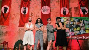 Lo spettacolo è una cinica e divertente auto-analisi collettiva che non fa sconti a nessuno. È irriverente, comico e profondo, costringe a fare i conti con il mondo che abbiamo costruito e la vita che vorremmo, mentre ci parla d’amore, paura del futuro, lavoro, sessualità, politica, solitudine e rassegnazione.